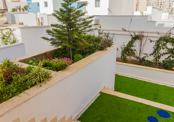 50% de la superficie des résidences est dédiée aux espaces verts afin d'offrir à nos résidents un cadre de vie le plus agréable possible. La gestion de l'environnement selon GIRYAD ne s'arrête pas à la simple implémentation des espaces verts mais se traduit aussi par la récupération et le recyclage des déchets ménagers, la gestion et l'entretien des parties communes et la cohérence de l'ensemble immobilier.
